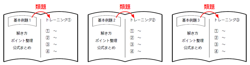 「最低限マスターすべき基本手法」を各回3テーマ厳選し、徹底的に類題トレーニングをくり返す教材です。 類題を徹底反復することで、 無理なく基礎事項の定着を図ることができます。