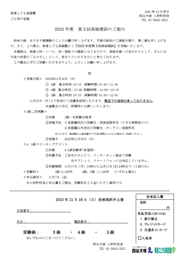 英語塾にお通いでない方も受験可能です。