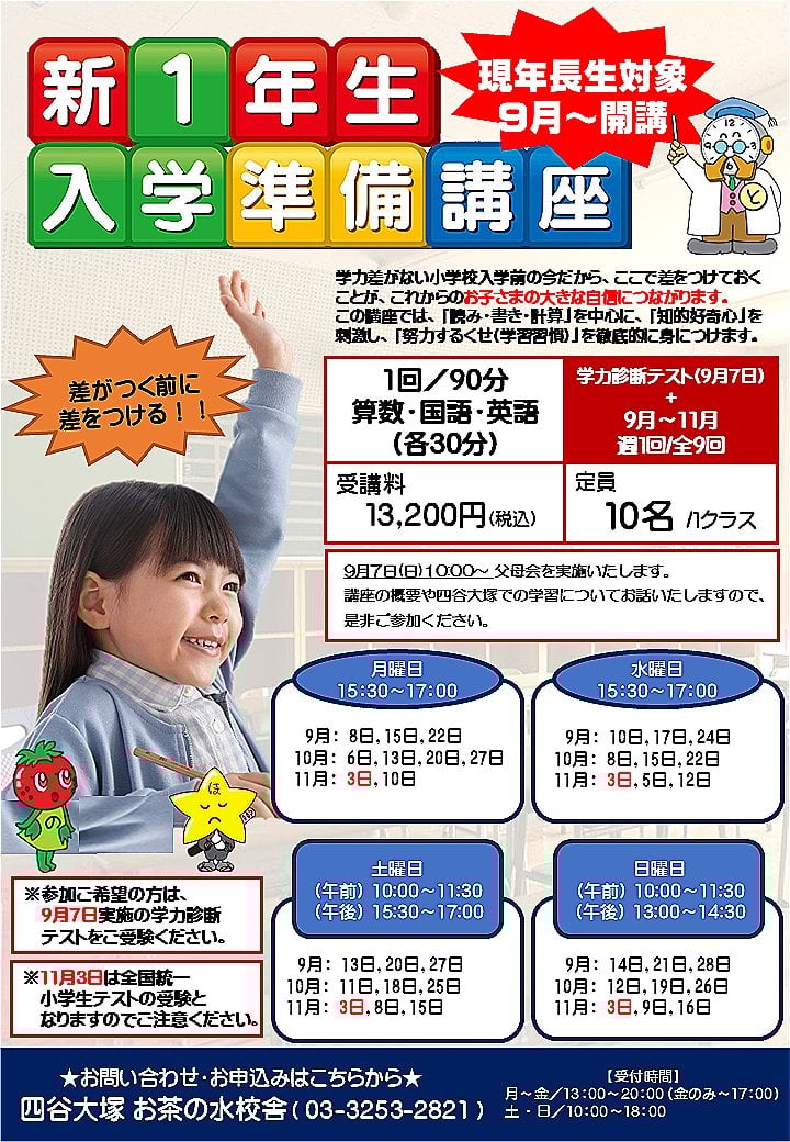 新1年生のお子さまを対象にした新1年生入学準備講座を開講いたします。