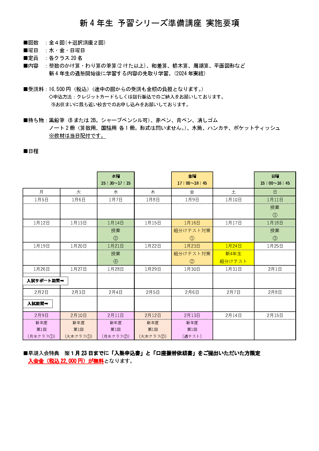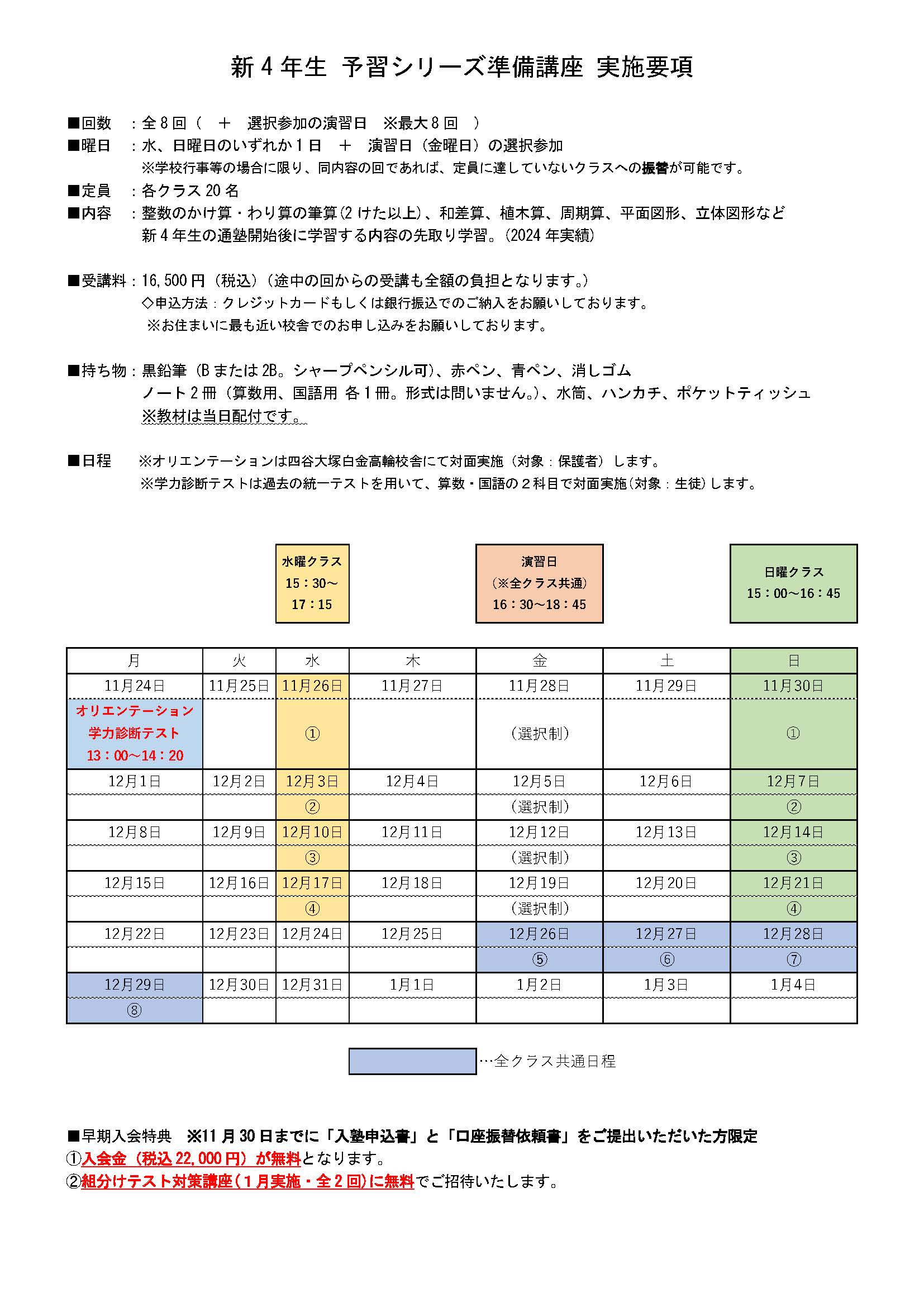 四谷大塚ドットコム|新4年生『予習シリーズ準備講座』エントリーフォーム
