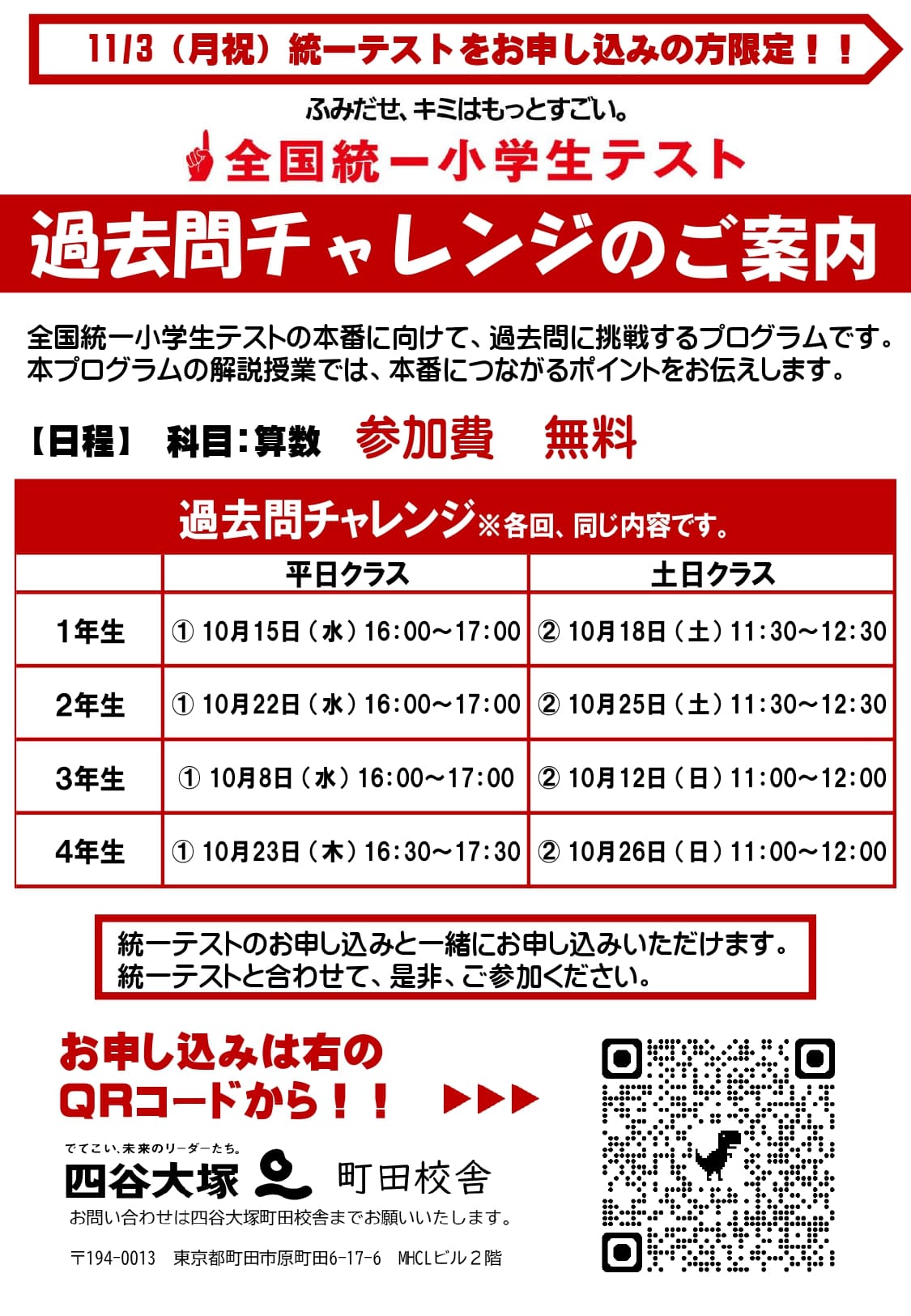 *上記のQRコードは統一テストのお申し込みと、「過去問チャレンジ」のお申込みの両方ができます。