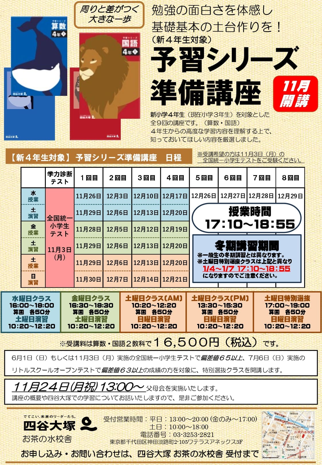 四谷大塚お茶の水校舎では、来年の4月から4年生に進級される