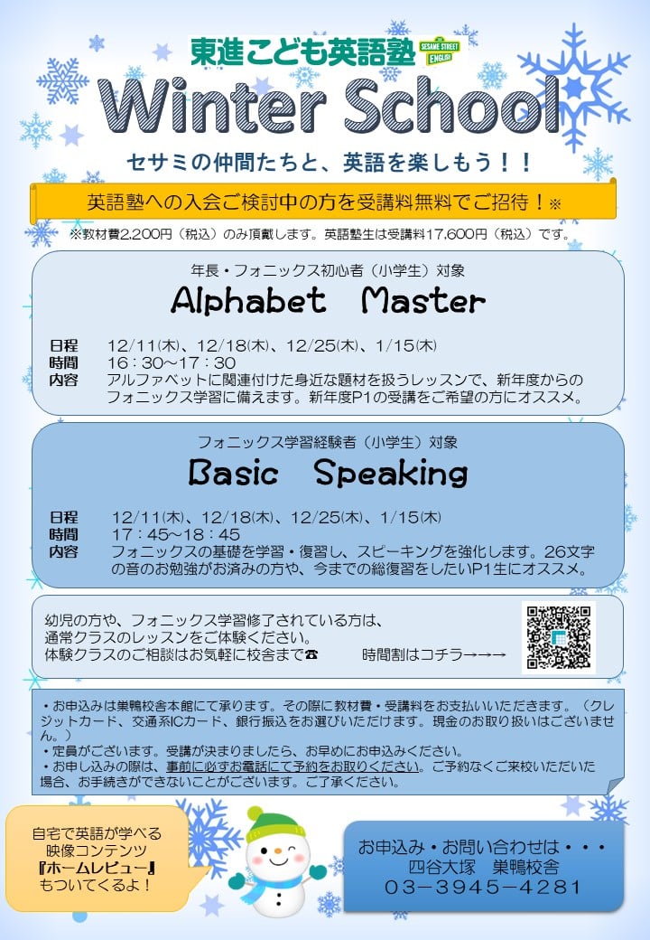 【12/3更新】冬期講習1年1組、冬期講習2年1組は、ご好評につき