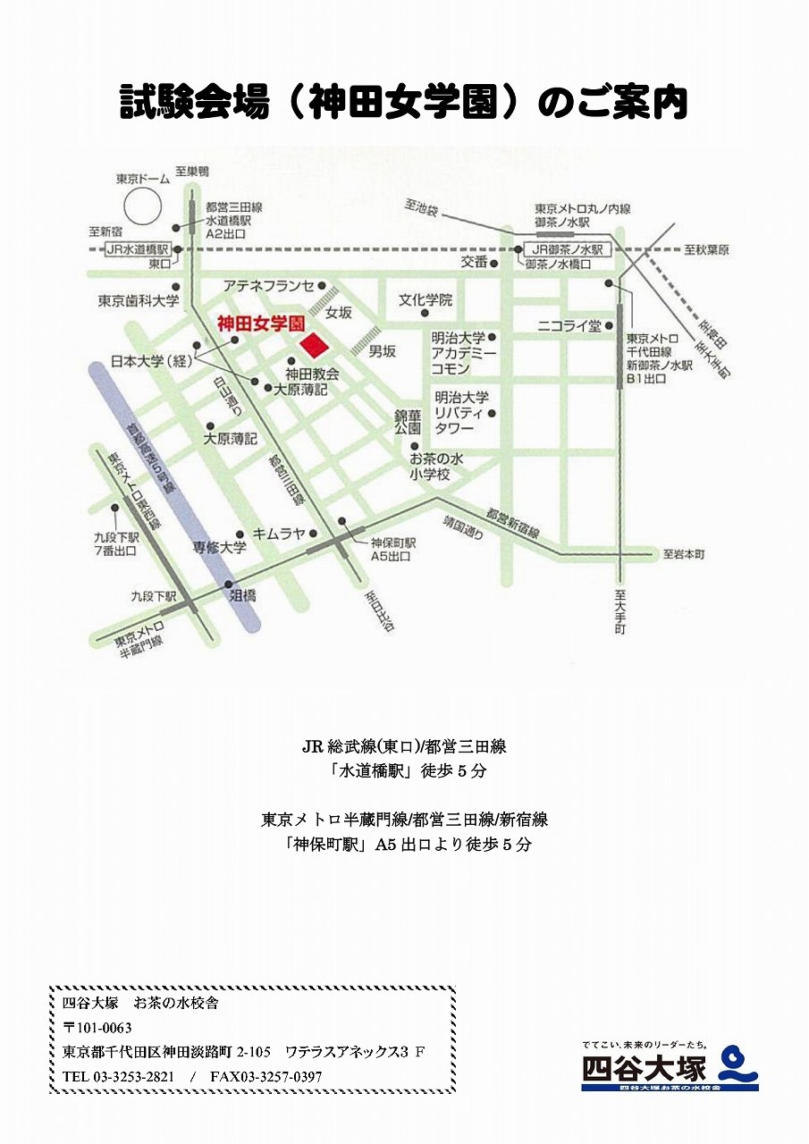 4年生・5年生は、月水クラスの方のみ「四谷大塚 お茶の水校舎」、その他の方は「神田女学園中学校高等学校」