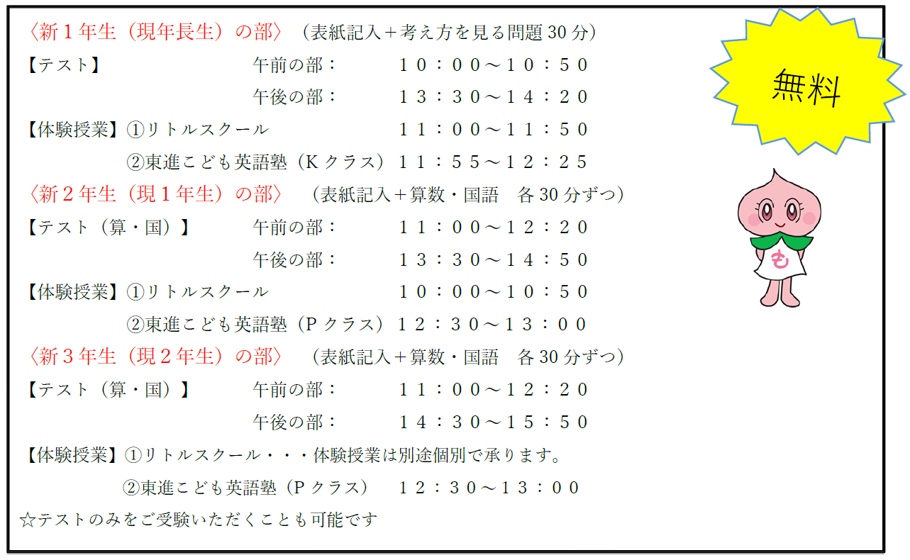 リトルスクールオープンテストのご案内です。