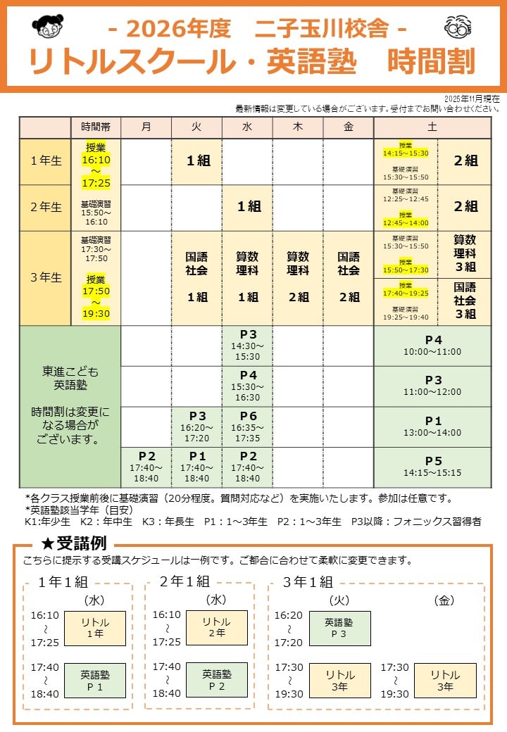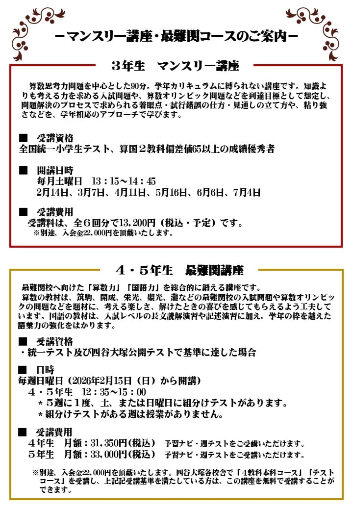 2026年2月から四谷大塚二子玉川校舎では新年度が開講いたします。