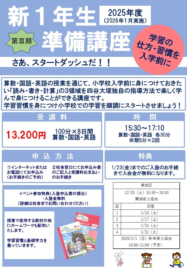 ■開講前父母会 12/20(土)15:30~16:30で開講前父母会を実施致します。是非ご参加ください。