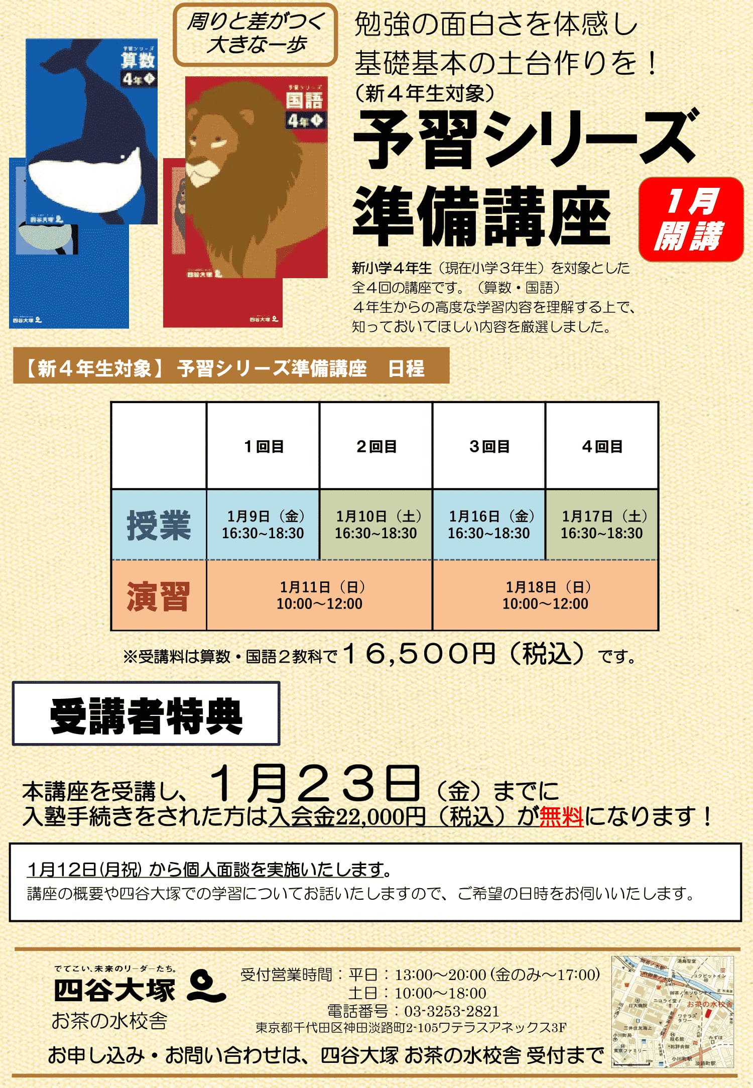 四谷大塚お茶の水校舎では、来年の4月から4年生に進級される