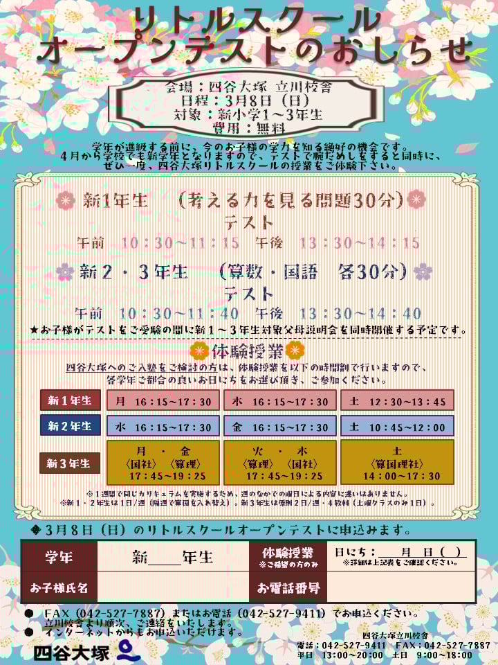 リトルオープンテストは在籍生の学習速度にあわせて実施されるテストです。