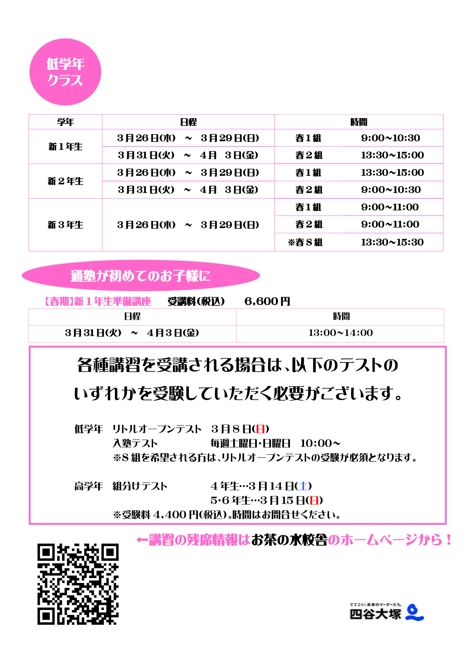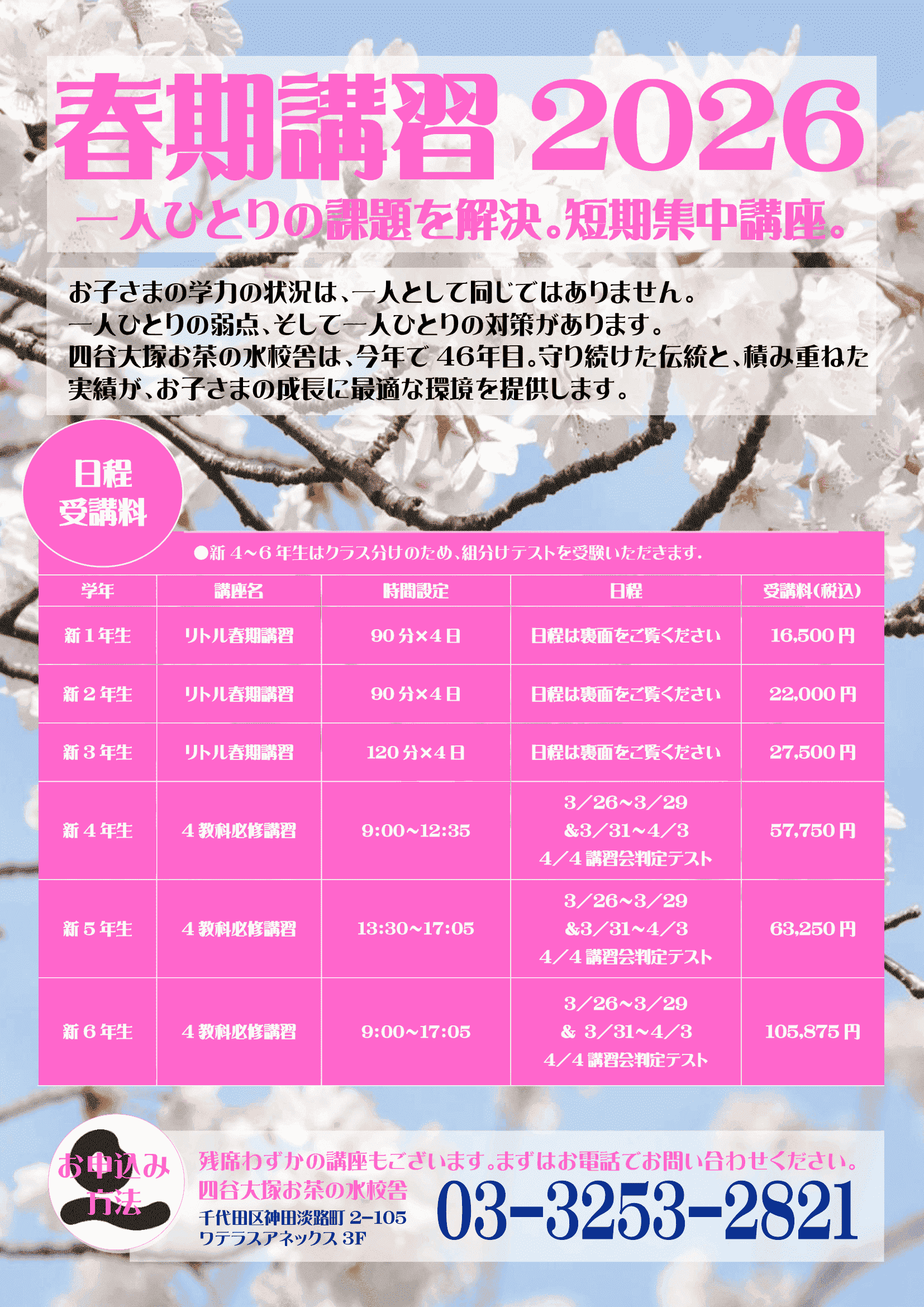 3/26~4/3の期間で春期講習が開催されます! 詳しくは以下の資料をご覧ください。