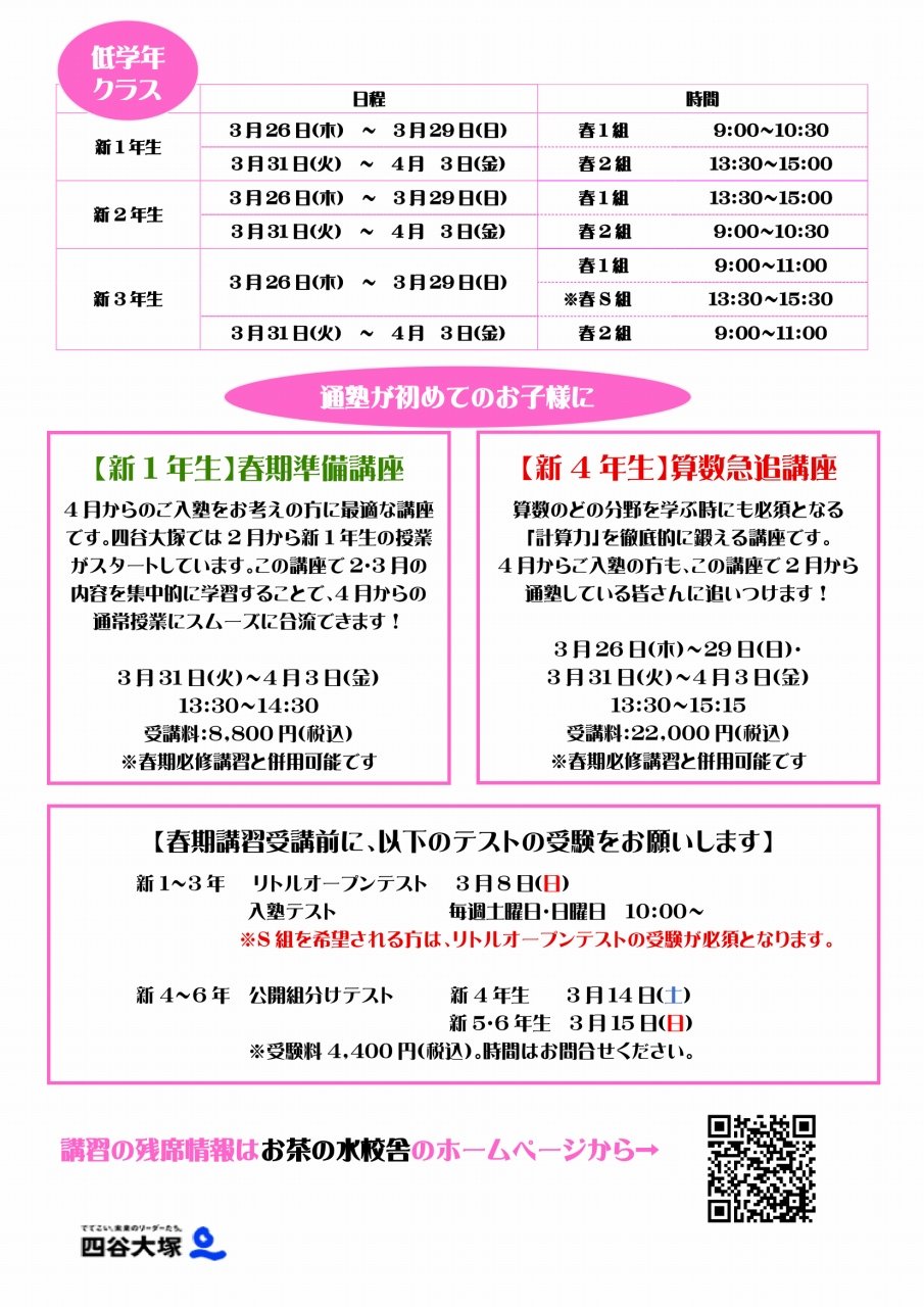 3/26~4/3の期間で春期講習が開催されます! 詳しくは以下の資料をご覧ください。