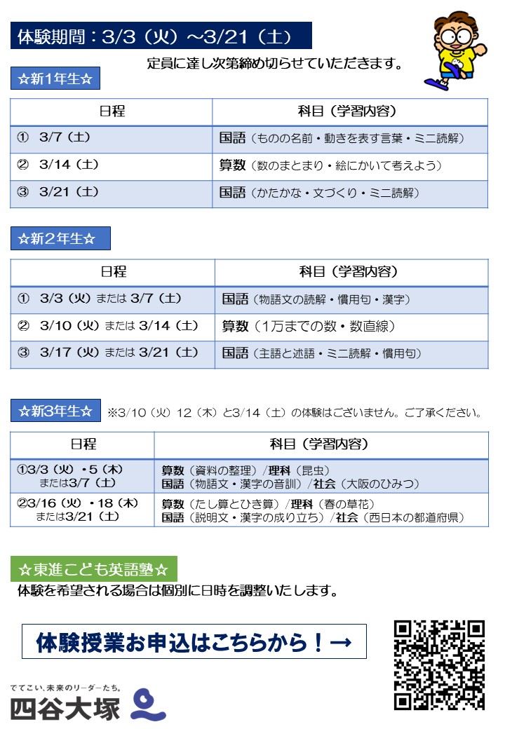 低学年(新1年生~新3年生)の体験お申込は