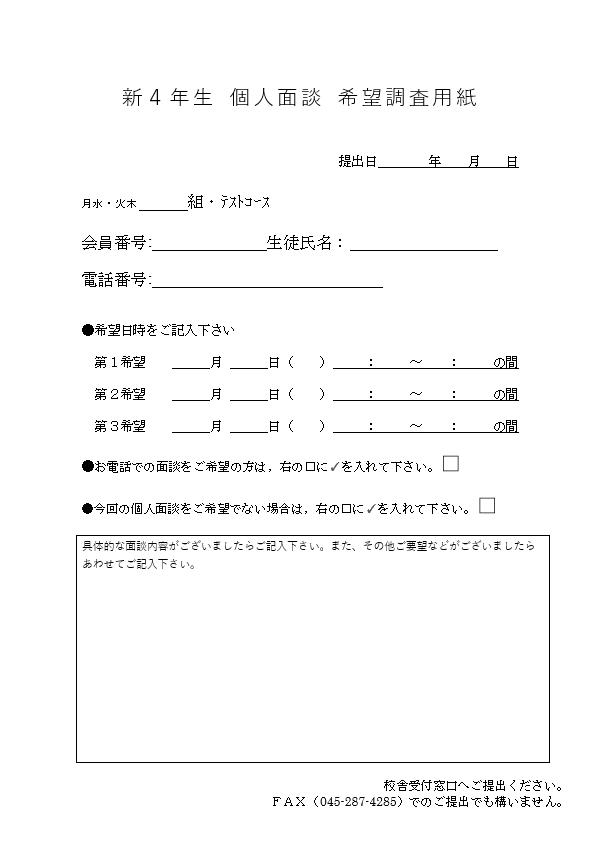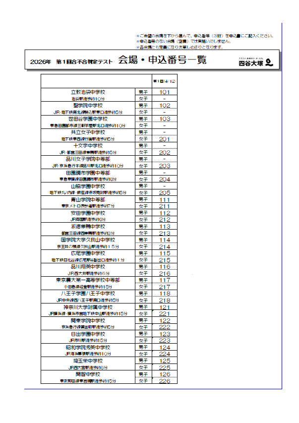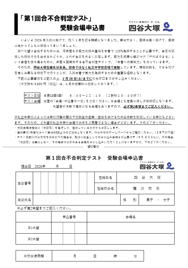 ・6年生対象 第1回合不合判定テスト 受験会場申込書