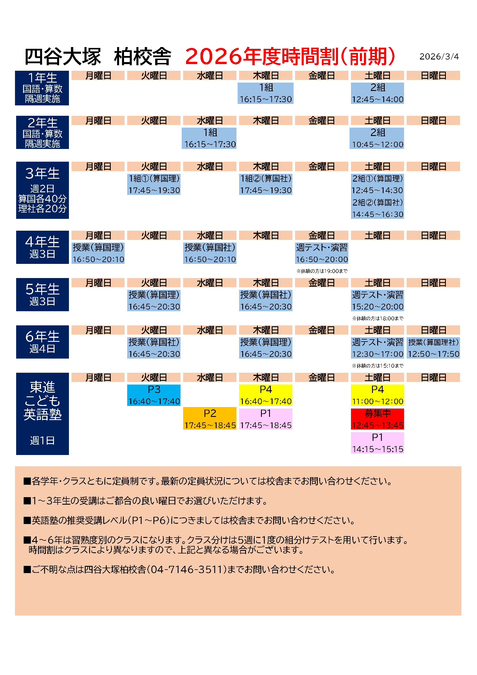 四谷大塚柏校舎では随時体験生および入塾テストを受け付けております。