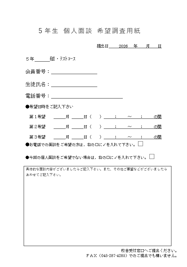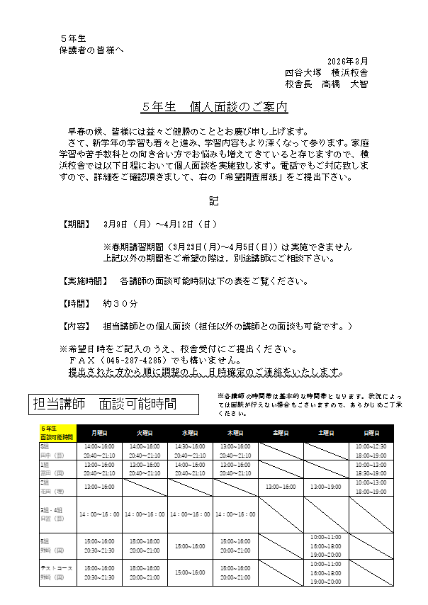・5年生 個人面談についてのご案内