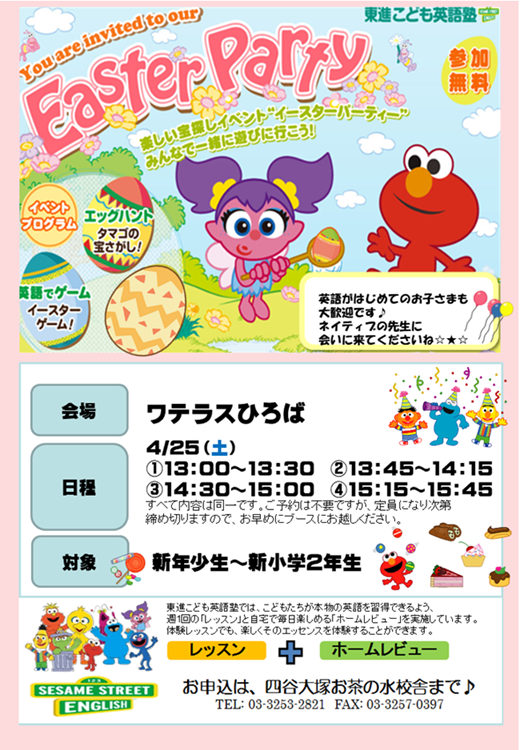 4月25日(土)に英語塾にてEaster Partyが開催されます!