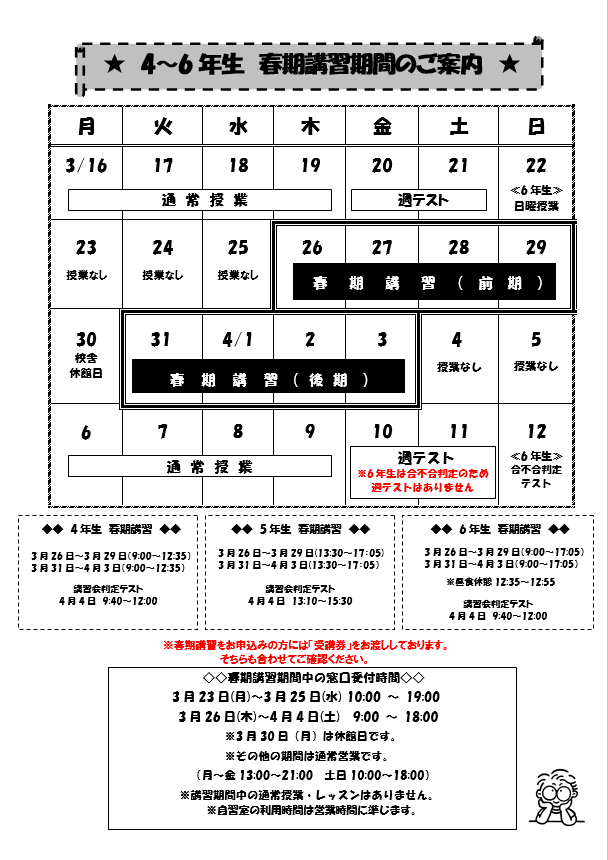 ・4~6年生対象 4~6年生春期講習のご案内