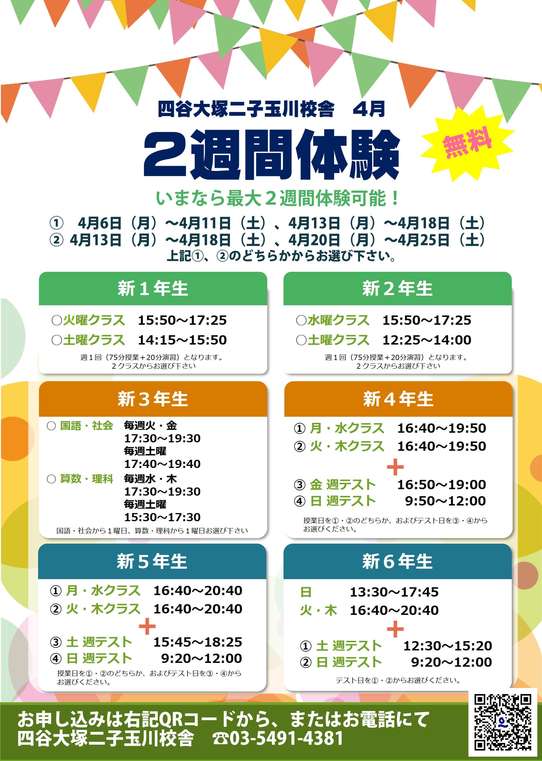 ぜひ一緒に新年度から四谷大塚二子玉川校舎にて学習を始めましょう!