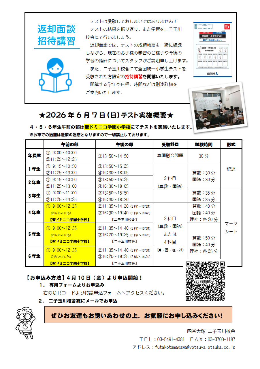 4/10(金)より、6/7(日)実施の「全国統一小学生テスト」のお申し込み受付が開始されます!