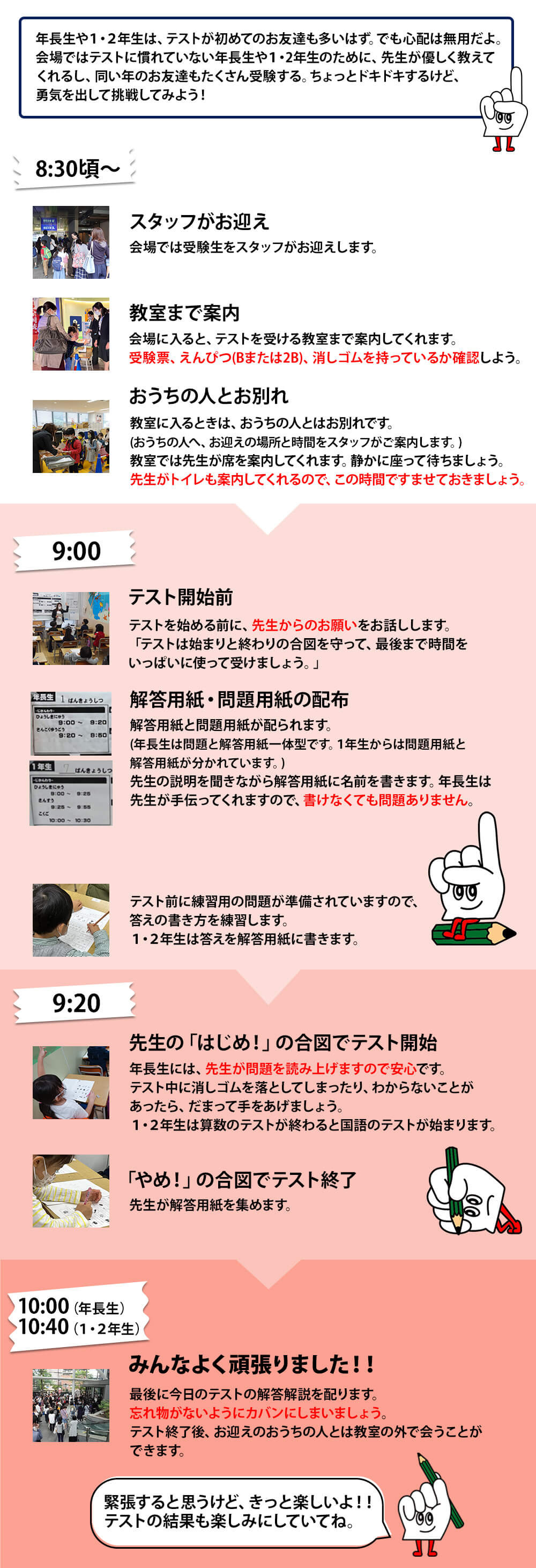 ※また、小学1・2年生、年長生のテストの実施有無は、申し込み画面にて各会場ごとにご覧いただけます。